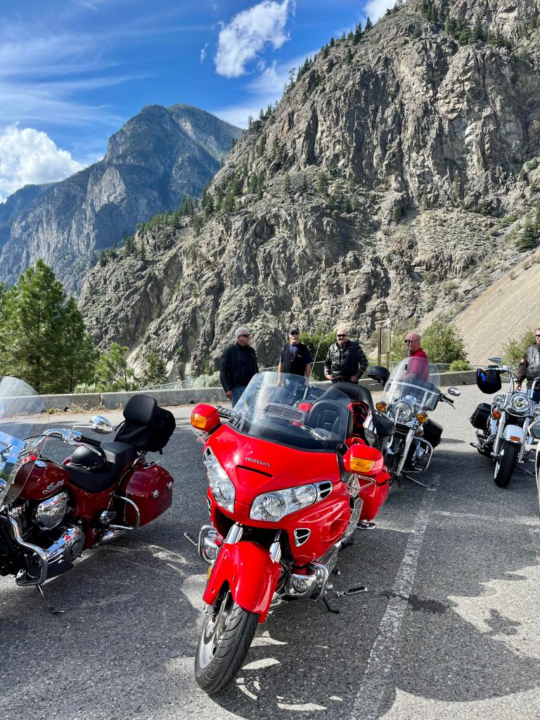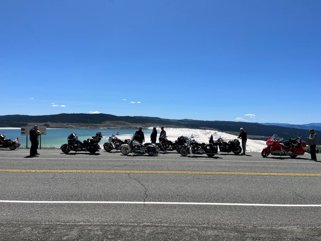 Day 2, started with a good breakfast then riding the 97c to Merritt going by the Highland Valley Copper mine. We did meet up with a friend that worked at the mine and gave us some very interesting facts. Also, this mine is huge, the trailing pond in 11km long!